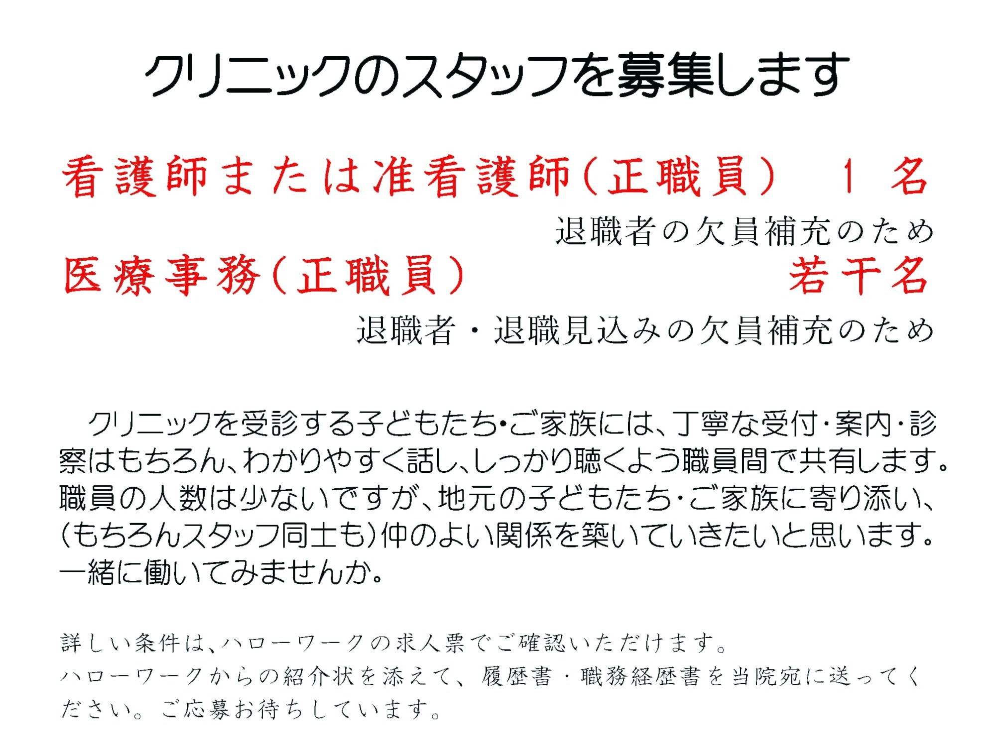 年明けからスタッフが2名減ります。これまでと同様の診療をすすめることは困難です。人数がそろい、状況が落ち着くまでのあいだ、左記のように診療時間を変更・縮小して対応させていただきます。加えて病欠などがでて、皆様のご希望に添えない場合には休診にせざるを得ないことがあります。