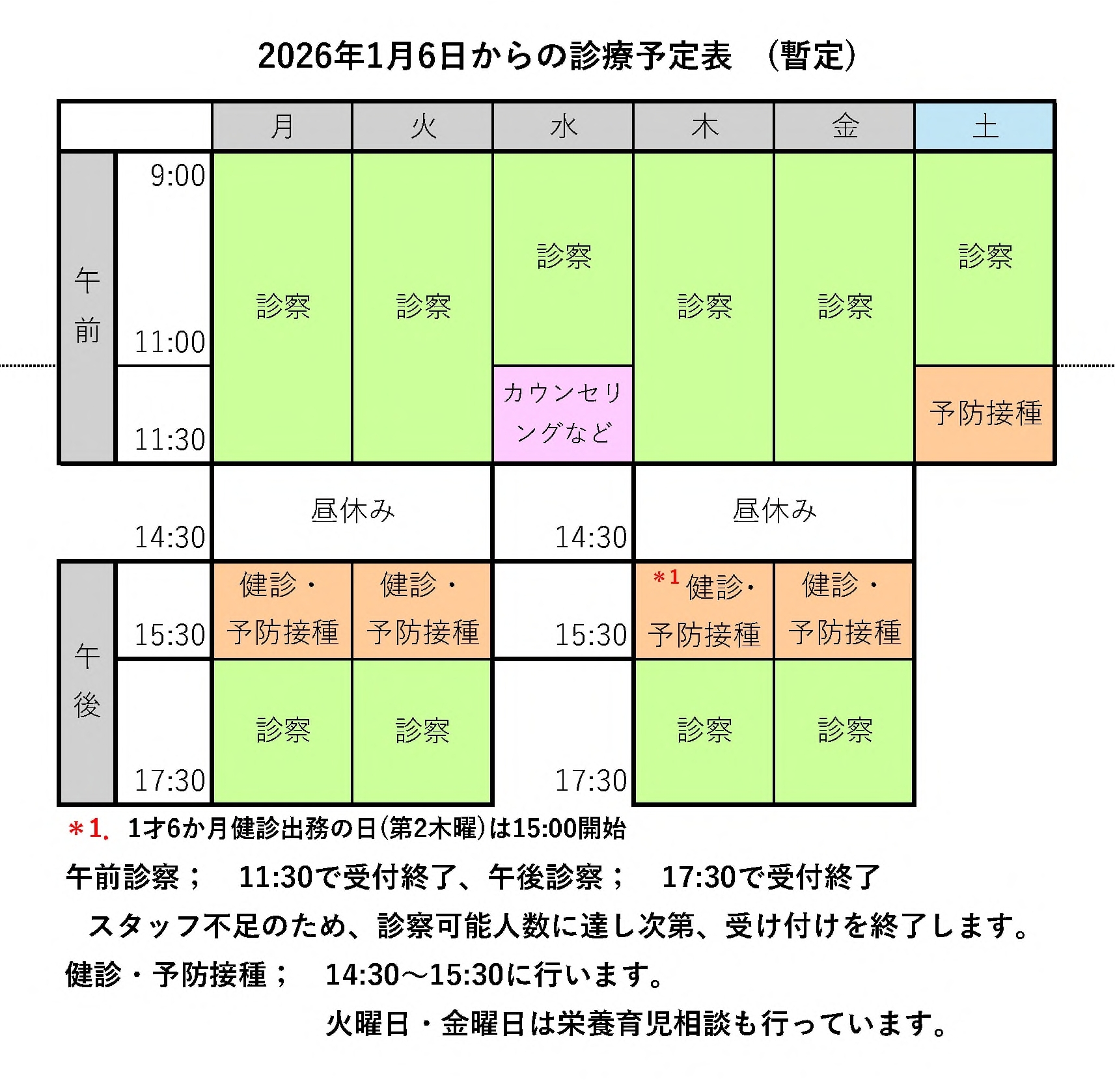 乳幼児健診・予防接種 14:30~15:30